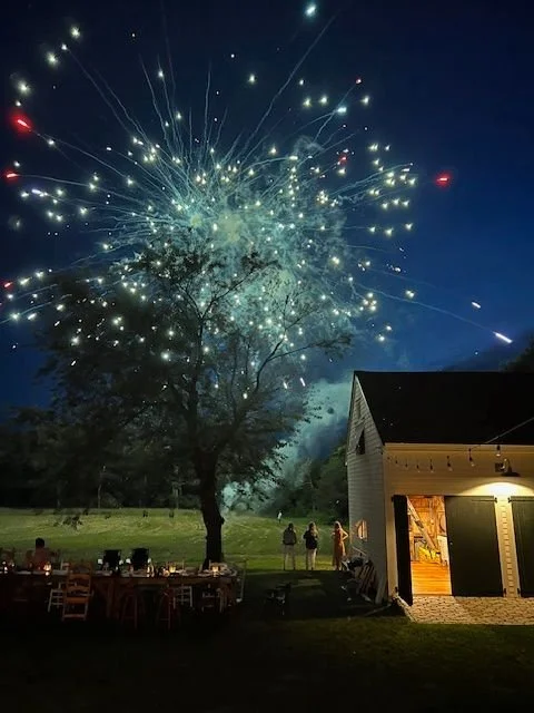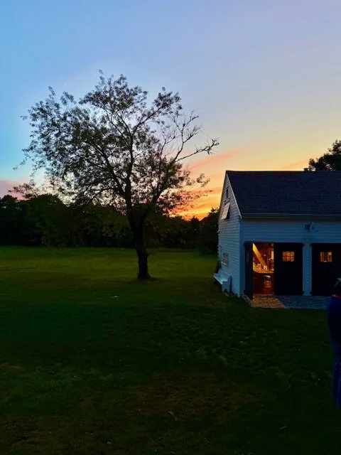 looking over at the old white farmhouse
